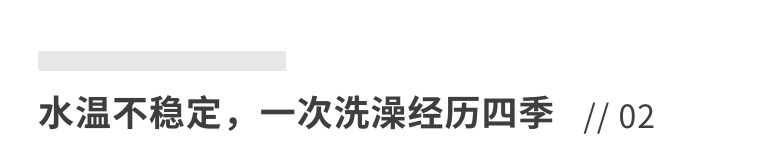 變頻恒溫控制系統(tǒng),30-55℃精準(zhǔn)控溫,告別忽冷忽熱;四季寬頻調(diào)溫,根據(jù)不同季節(jié)和人群,滿足不同的洗浴水溫需求。