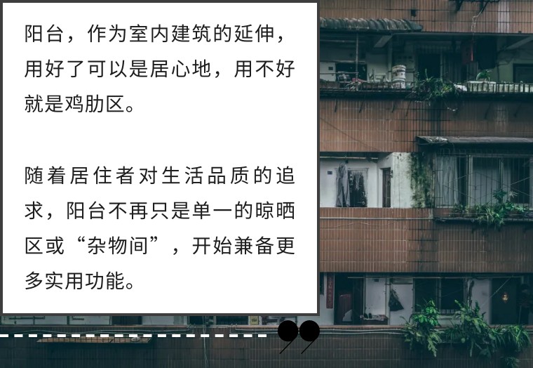 陽臺,作為室內建筑的延伸,用好了可以是居心地,用不好就是雞肋區(qū)。