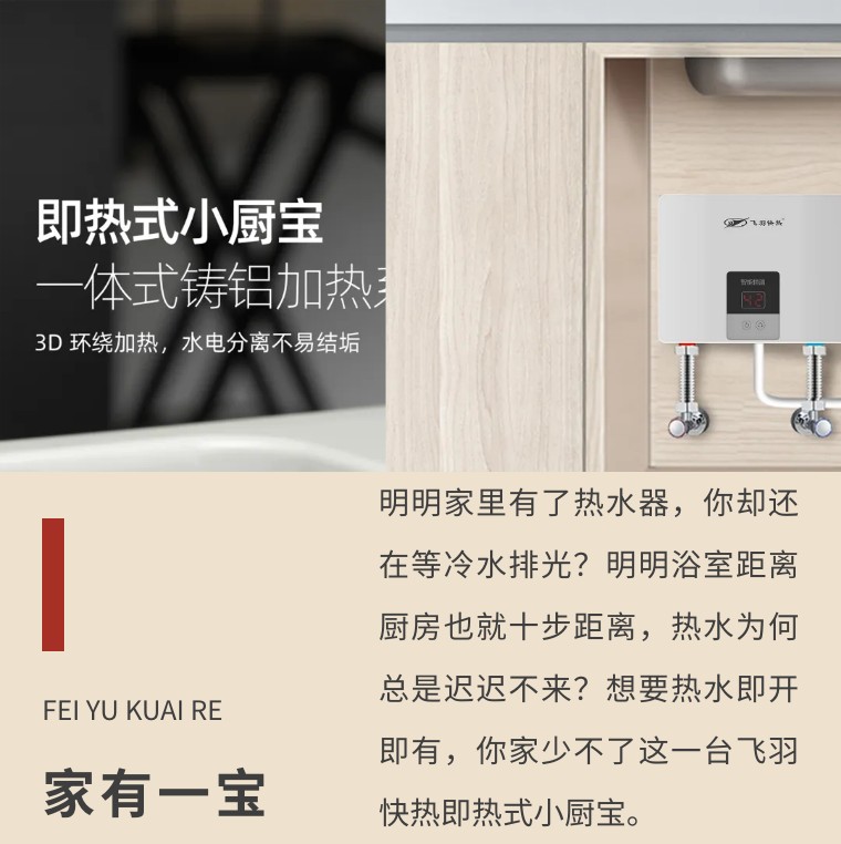 明明家里有了熱水器,你卻還在等冷水排光?明明浴室距離廚房也就十步距離,熱水為何總是遲遲不來?想要熱水即開即有,你家少不了這一臺(tái)飛羽快熱即熱式小廚寶。