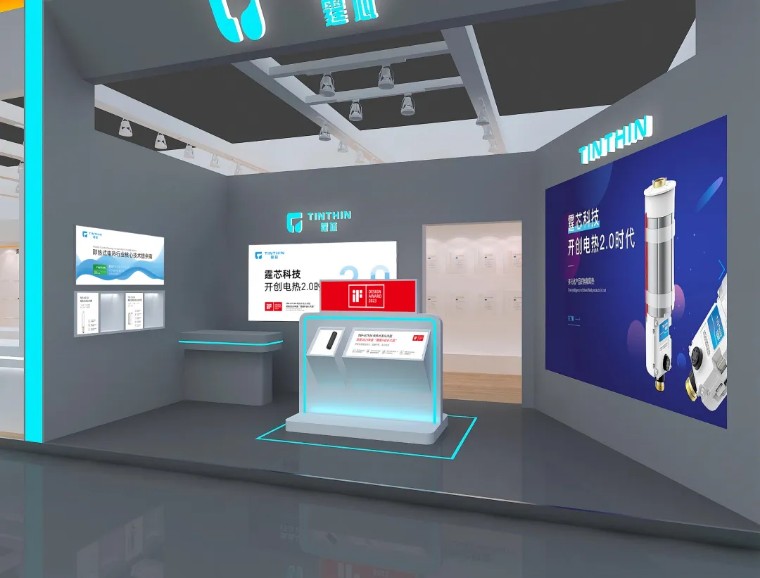 在飛羽快熱展區(qū)右側,特別設置了集團旗下核心技術提供商——霆芯科技,它以充滿科技感的藍色為主題色,以凝結飛羽快熱29年核心研發(fā)技術的模塊化加熱模組——霆芯?高性能安全內膽為主要產品,賦能即熱行業(yè),開創(chuàng)電熱2.0時代。